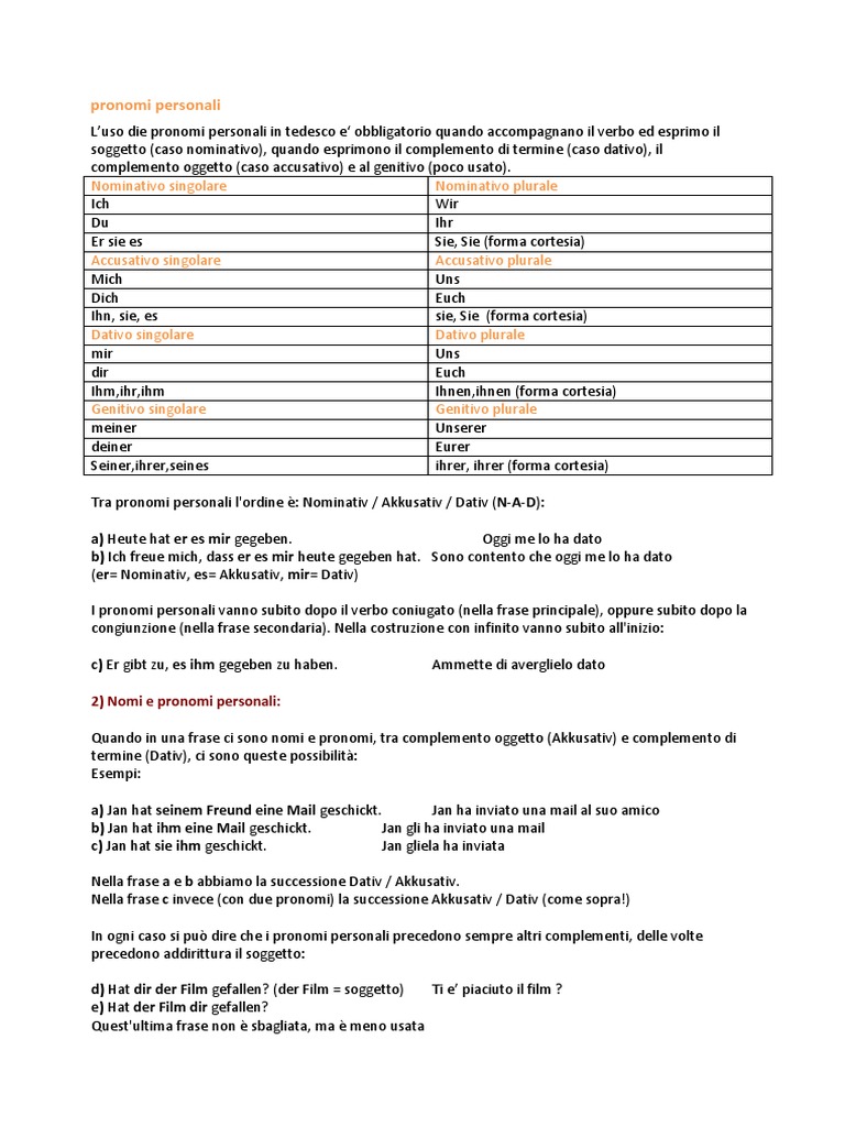 Luso die pronomi personali in tedesco e obbligatorio quando accompagnano il verbo ed esprimo il