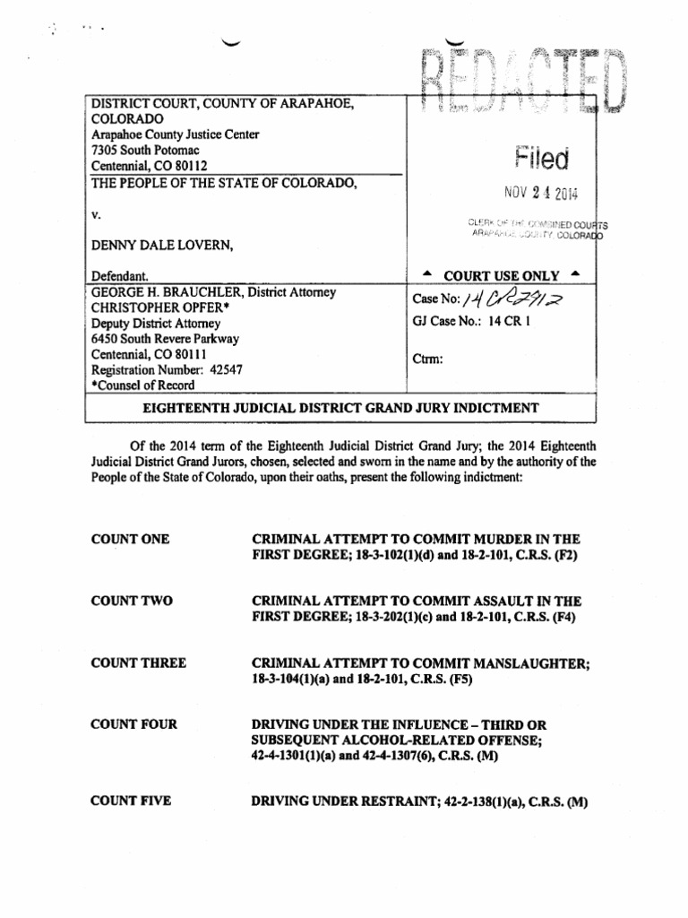 ‘On or about November 5, 2014, in Arapahoe County, Colorado, DENNY DALE