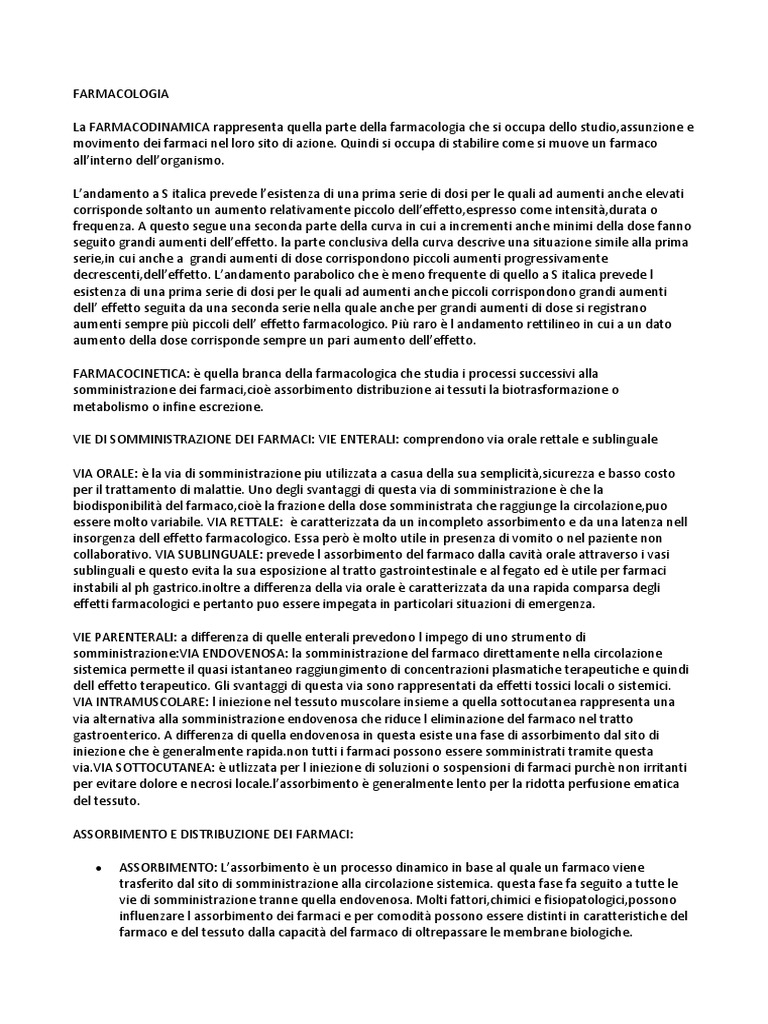 somministrazione dei farmaci,cio assorbimento distribuzione ai tessuti la biotrasformazione o