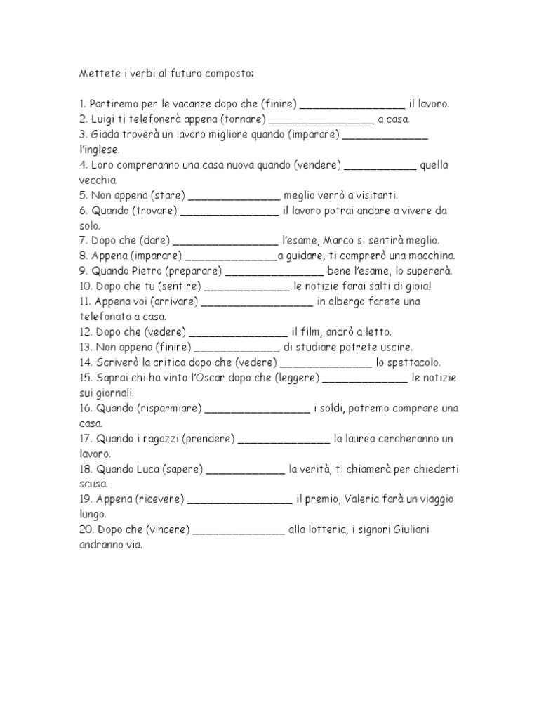 6. Quando (trovare) _______________ il lavoro potrai andare a vivere da