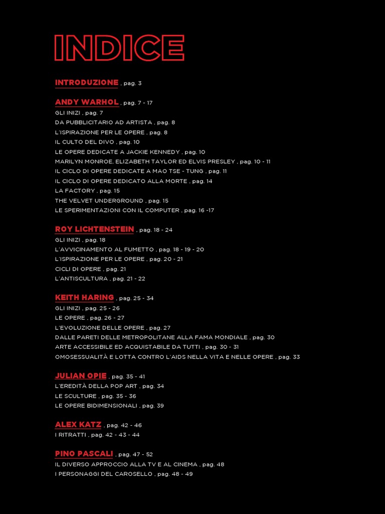 Gli artisti presi in esame sono Andy Warhol, Roy Lichtenstein, Keith Haring, Julian