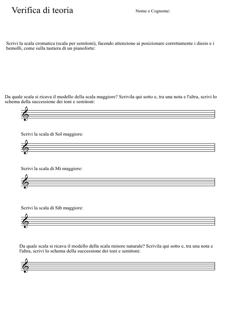 Scrivi la scala cromatica (scala per semitoni), facendo attenzione ai posizionare correttamente i diesis e i