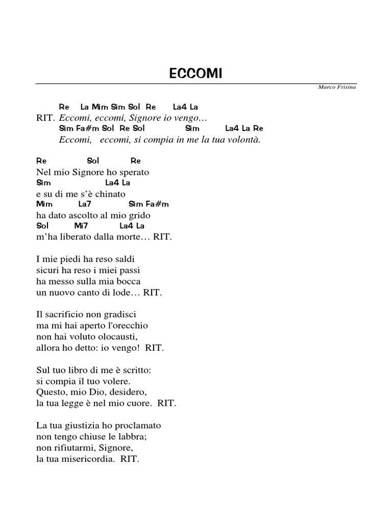 RIT. Eccomi, eccomi, Signore io vengo