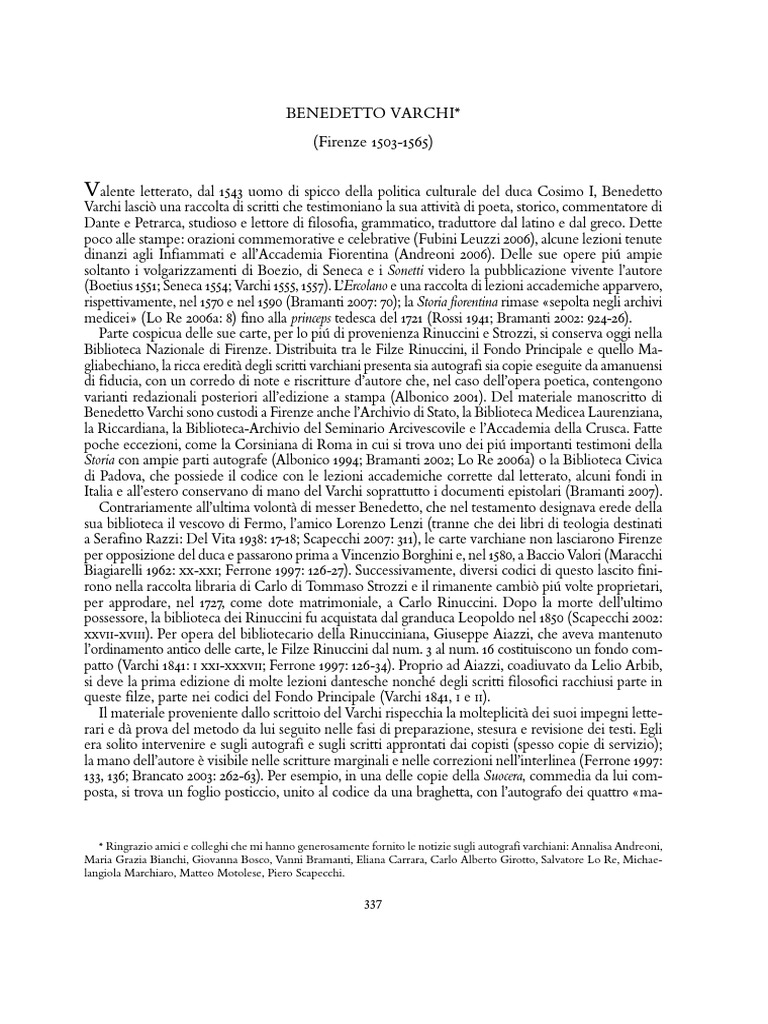 mancano . Albonico 1994: 1073-74; Bramanti 2002: 918; Lo Re 2006b: 272; Varchi i.c.s.