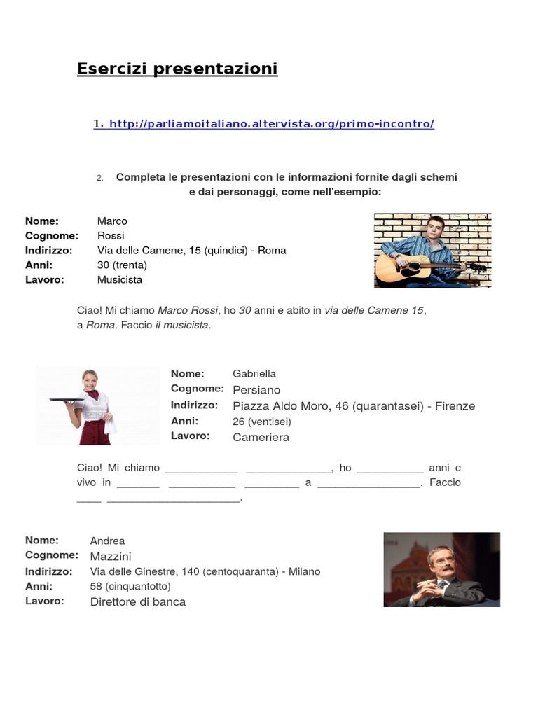 Salve! Mi chiamo ___________ ____________, ho ____________ anni e abito