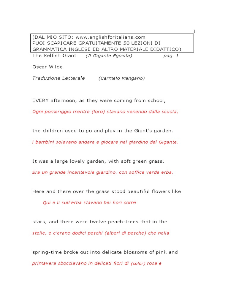 giardino, disse il Gigante; chiunque pu capire ci, ed io