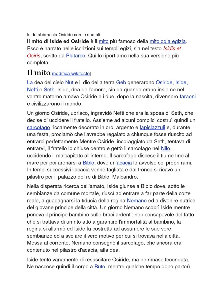 Osiris, scritto da Plutarco. Qui lo riportiamo nella sua versione pi