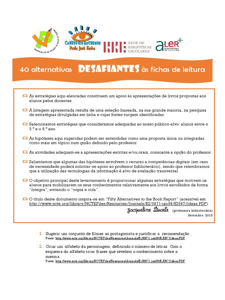 40 alternativas desafiantes s fichas de leitura