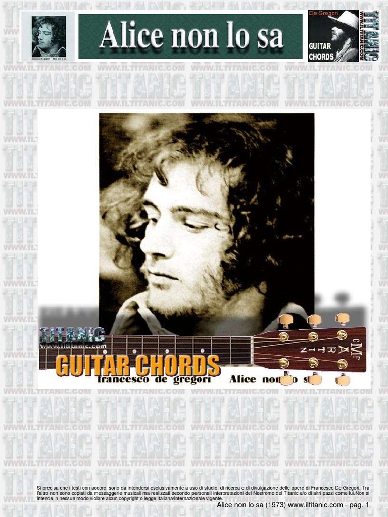 Si precisa che i testi con accordi sono da intendersi esclusivamente a uso di studio, di ricerca e di divulgazione delle opere di Francesco De Gregori. Tra