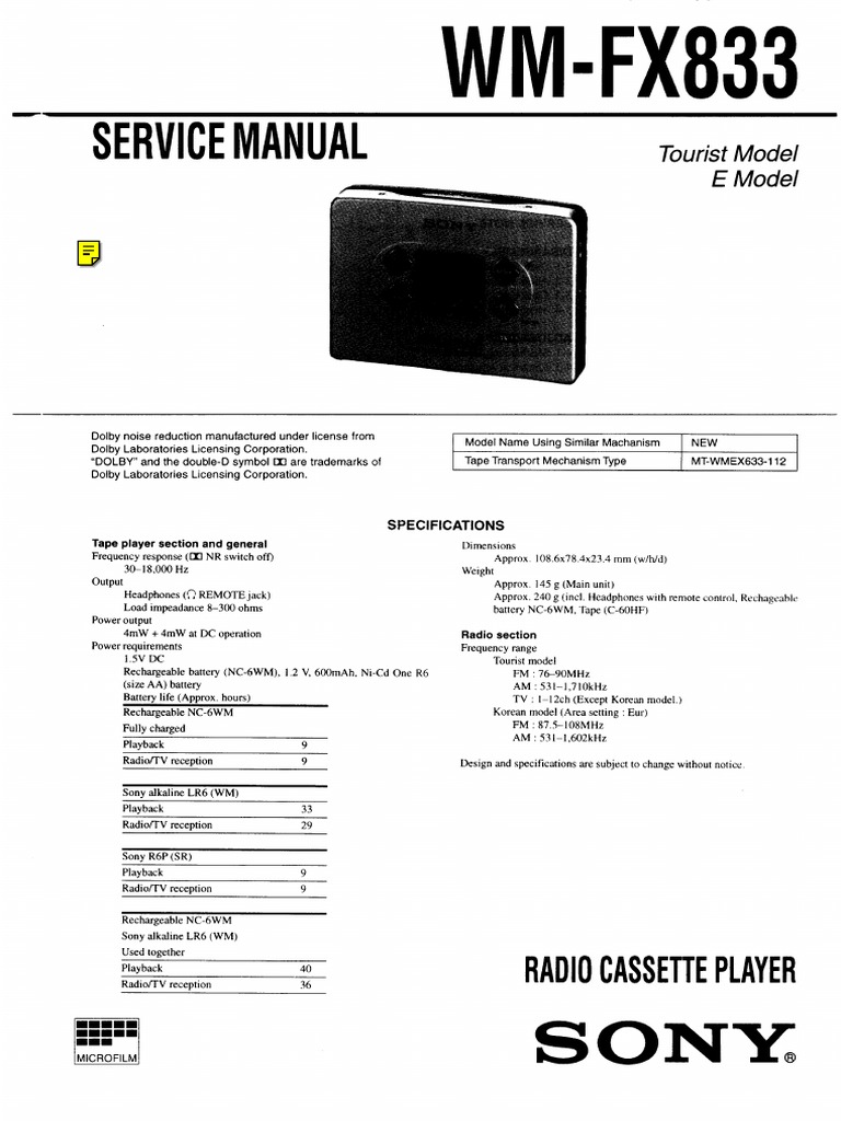 “DOLBY” and the double-D symbol OD are trademarks of “Tape Transport Mechanism Type MEXES-112