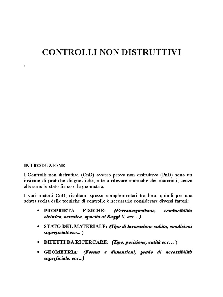 I Controlli non distruttivi (CnD) ovvero prove non distruttive (PnD) sono un