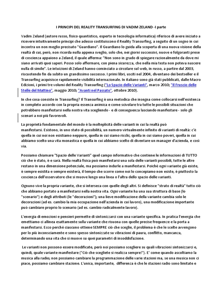 ottenere tutto ci che volete avendo studiato ed integrato i principi del Transurfing. Conoscendo tali