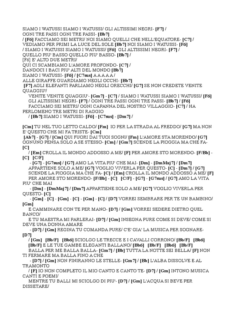 / SIAMO I WATUSSI SIAMO I WATUSSI/ [F6] GLI ALTISSIMI NEGRI- [F7] /