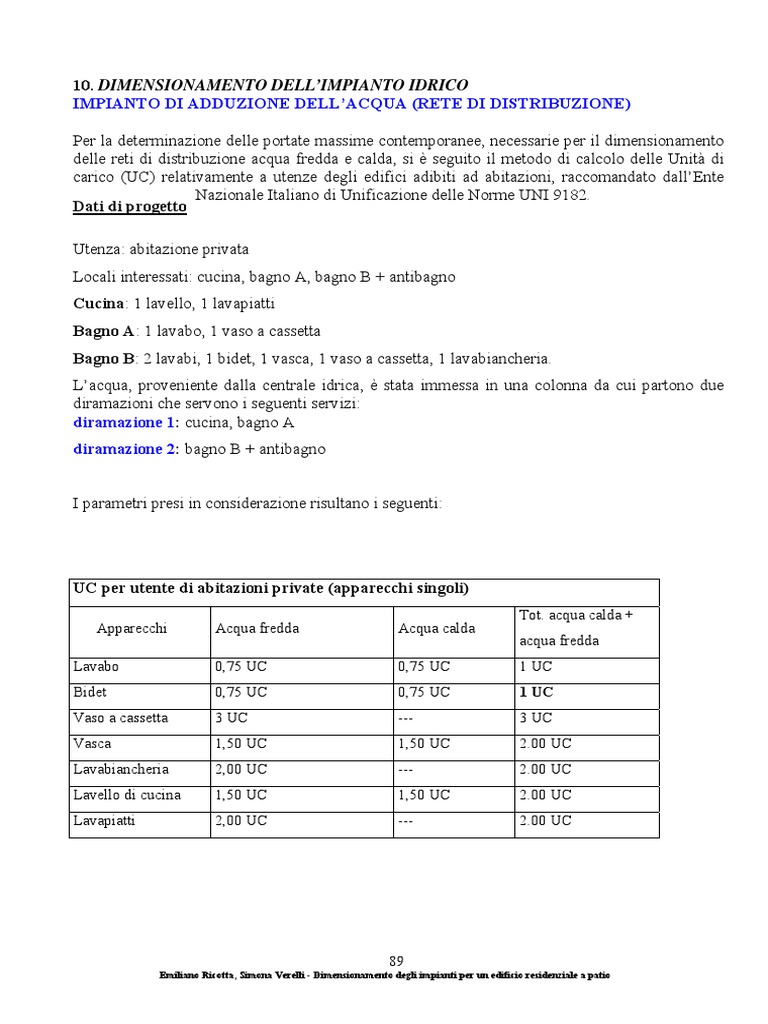 Emiliano Ricotta, Simona Verelli - Dimensionamento degli impianti per un edificio residenziale a patio