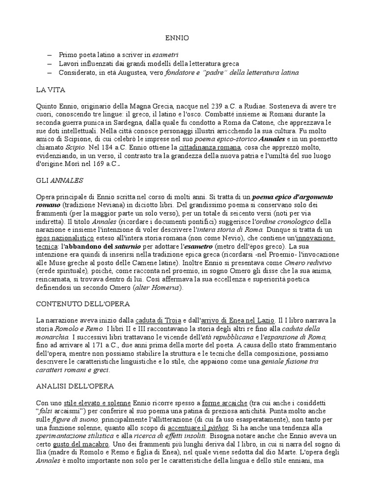 Annales molto importante non solo per le caratteristiche della lingua e dello stile enniani, ma