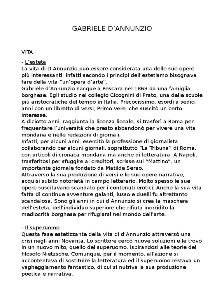 La vita di DAnnunzio pu essere considerata una delle sue opere