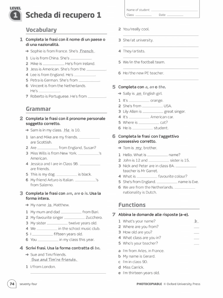 esercizi di recupero inglese, scuola media