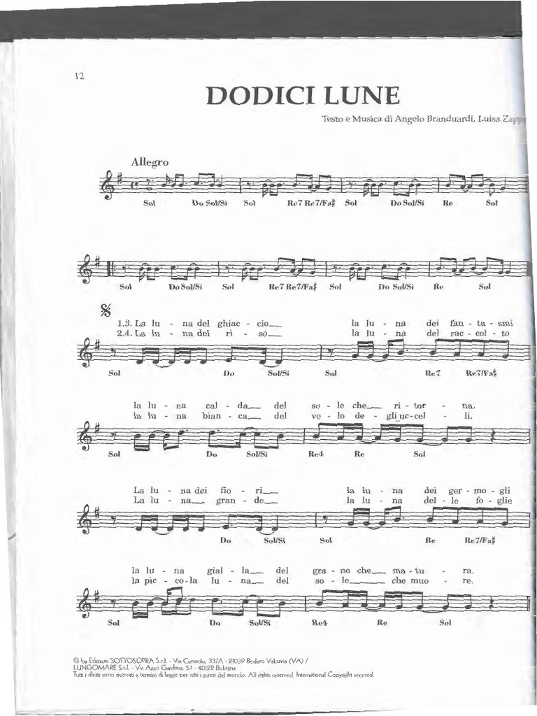 co - si, not - te do - po not - te le do-di-ci lu - ne