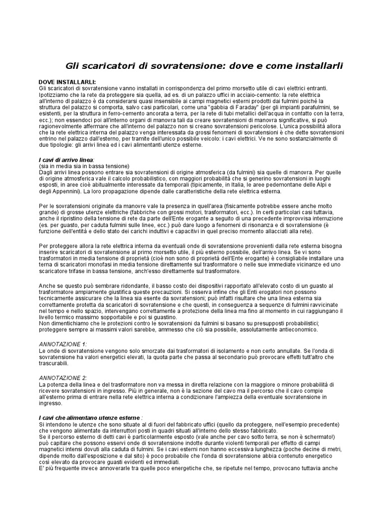 tecnicamente assicurare che la linea sia esente da sovratensioni; pu infatti risultare che una linea esterna sia