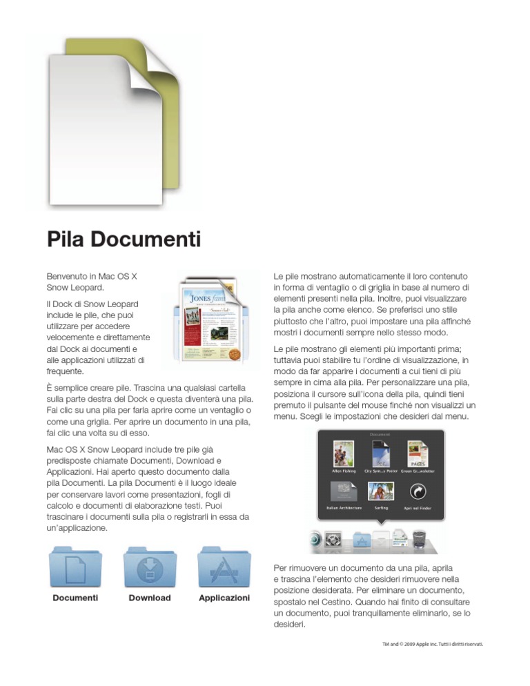 Benvenuto in Mac OS X Le pile mostrano automaticamente il loro contenuto