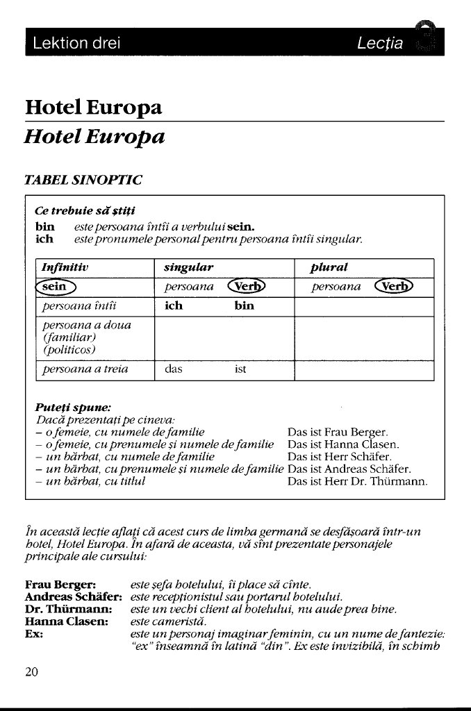 hotel, Hotel Europa. In afard de aceasta, vd sint prezentate personajele
