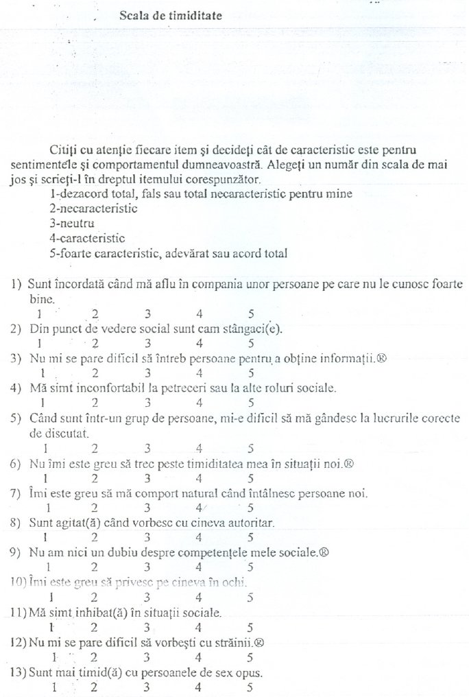 . Scala de timiditate