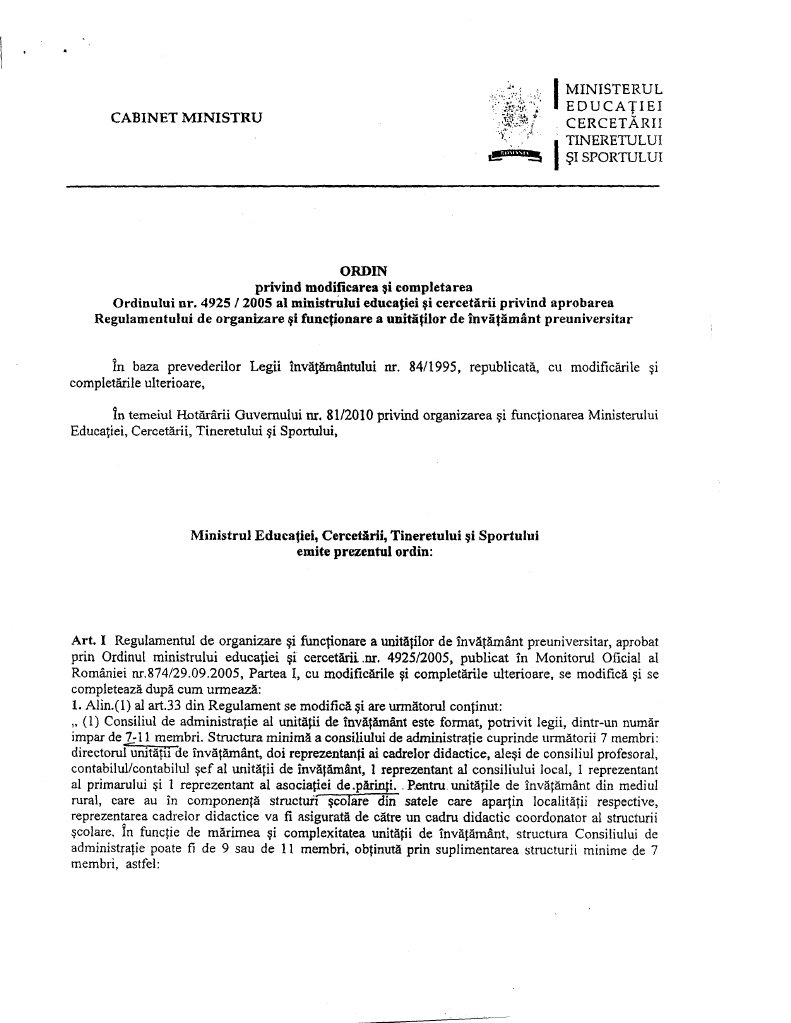 prin Ordinul ministrului educatiei si [Link]. 4925/2005, publicat in Monitorul Oficial al