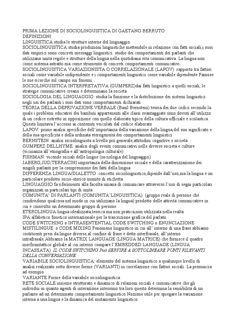 PRIMA LEZIONE DI SOCIOLINGUISTICA DI GAETANO BERRUTO