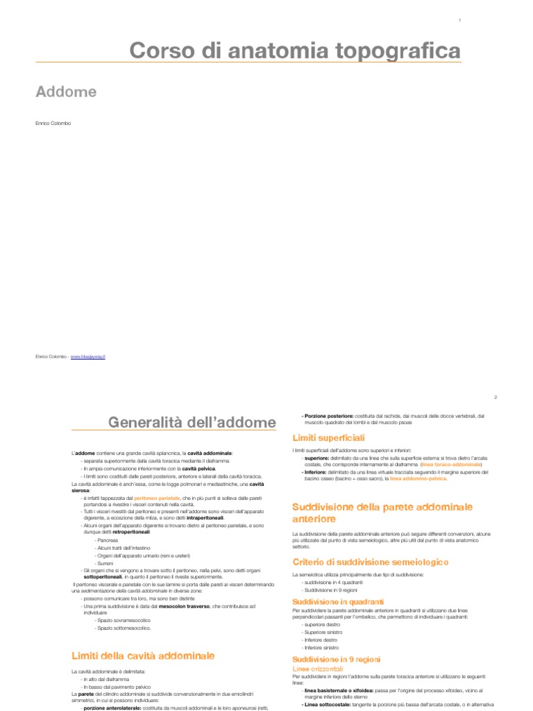 dunque detti retroperitoneali La suddivisione della parete addominale anteriore può seguire differenti convenzioni, alcune