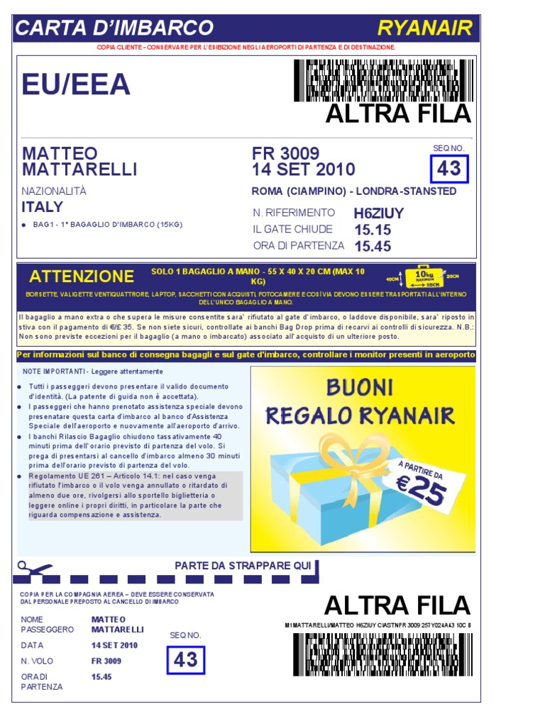 presenatare questa carta d’imbarco al banco d’Assistenza