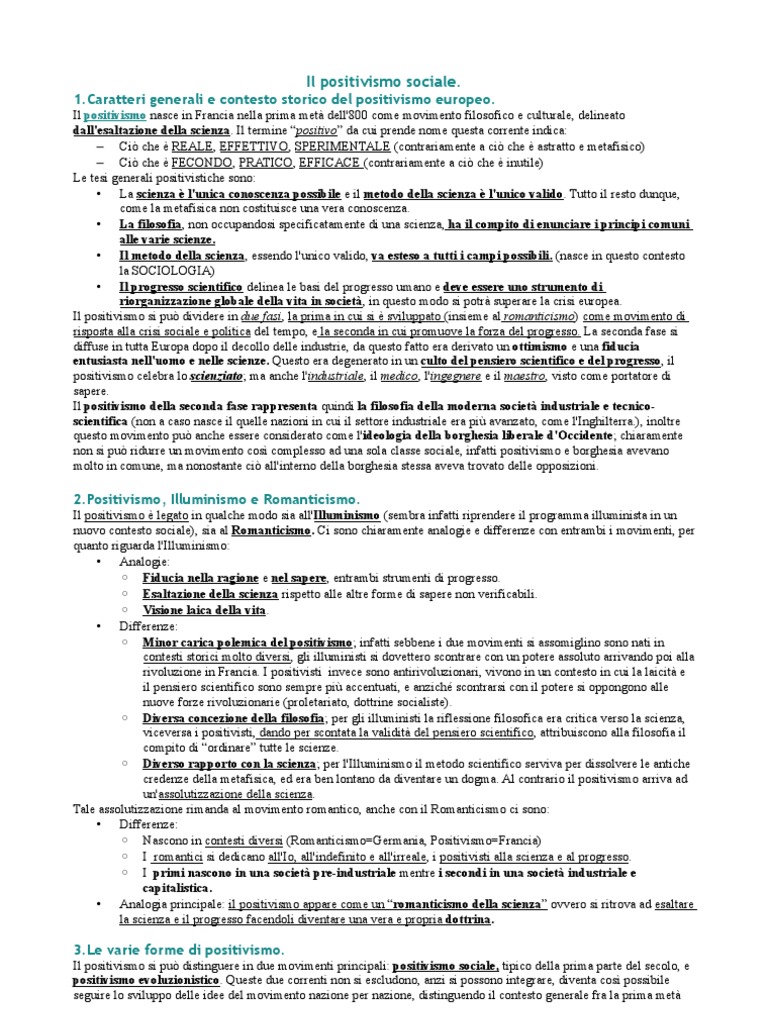 intellettuali non sono del tutto coinvolti in questa filosofia positivista (anarchia intellettuale). Per Comte una sola delle