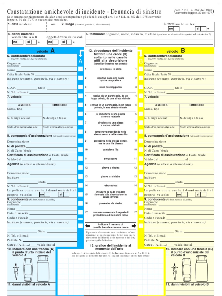 siano coinvolti 3 veicoli, e così via). Il modulo può essere fornito da una qualsiasi delle parti. Se il modulo è sotto-