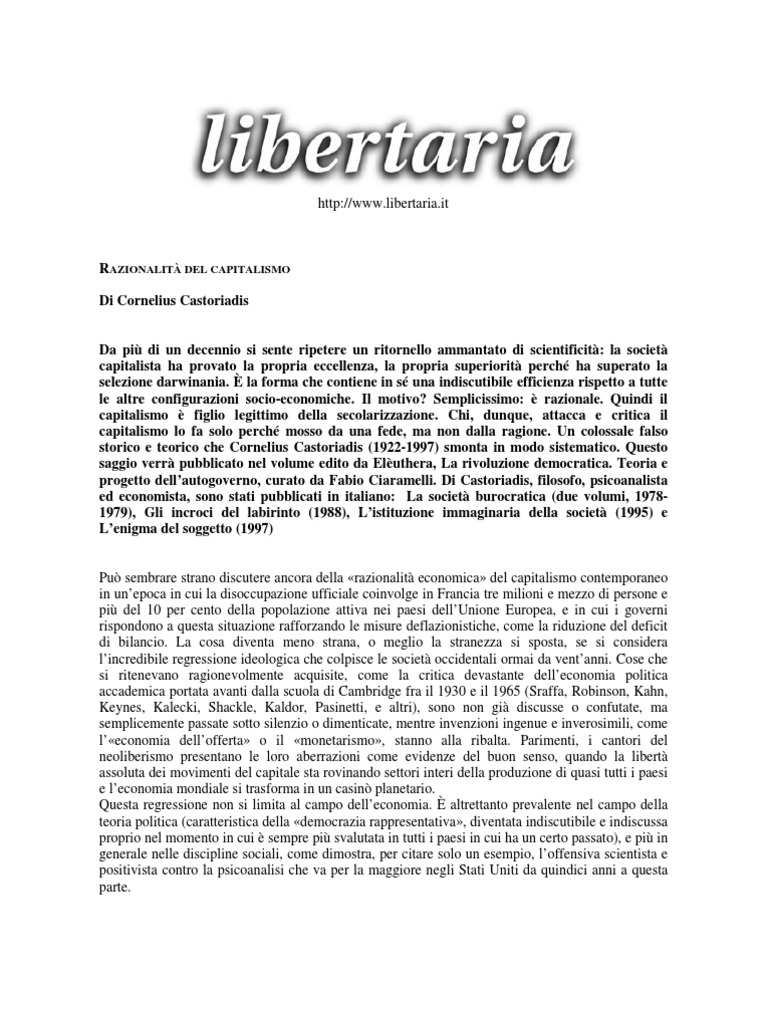 tautologica la «legittimazione» del capitalismo con la razionalità: chi, all’interno di questa società,