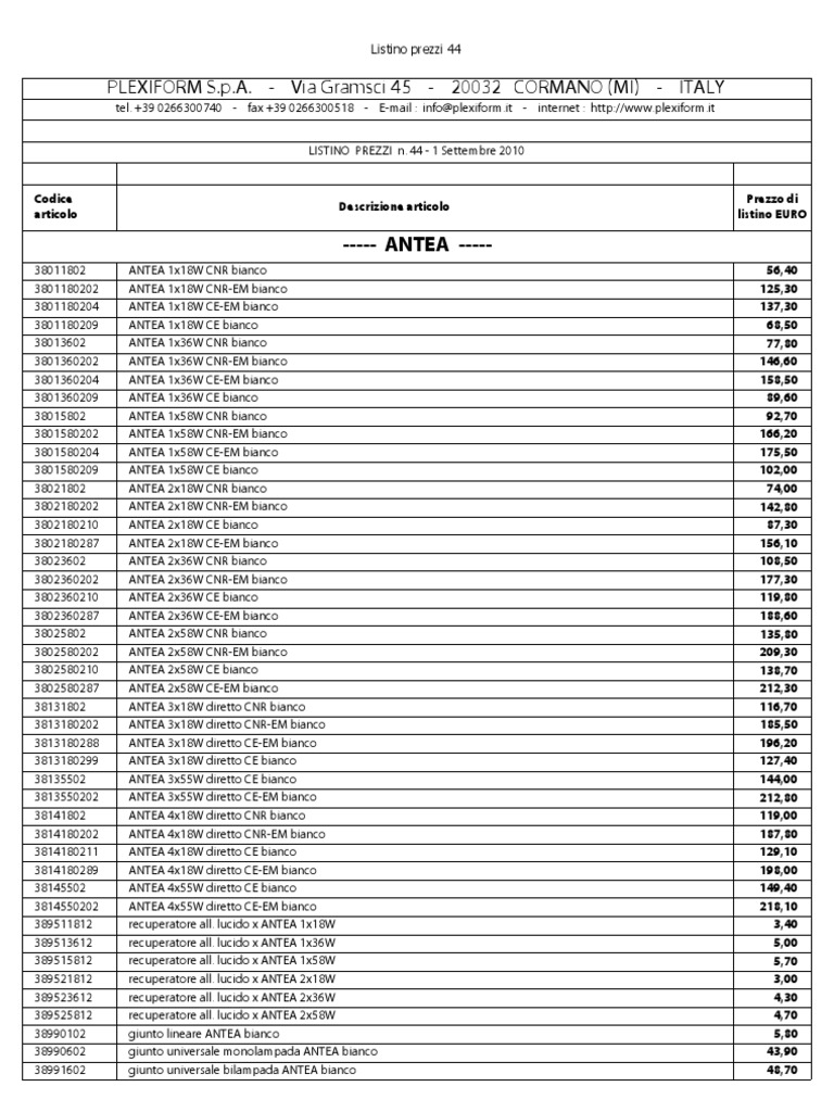 Listino prezzi 44