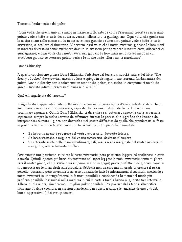 A questa conclusione giunse David Sklansky, l'ideatore del teorema, nonchè autore del libro "The