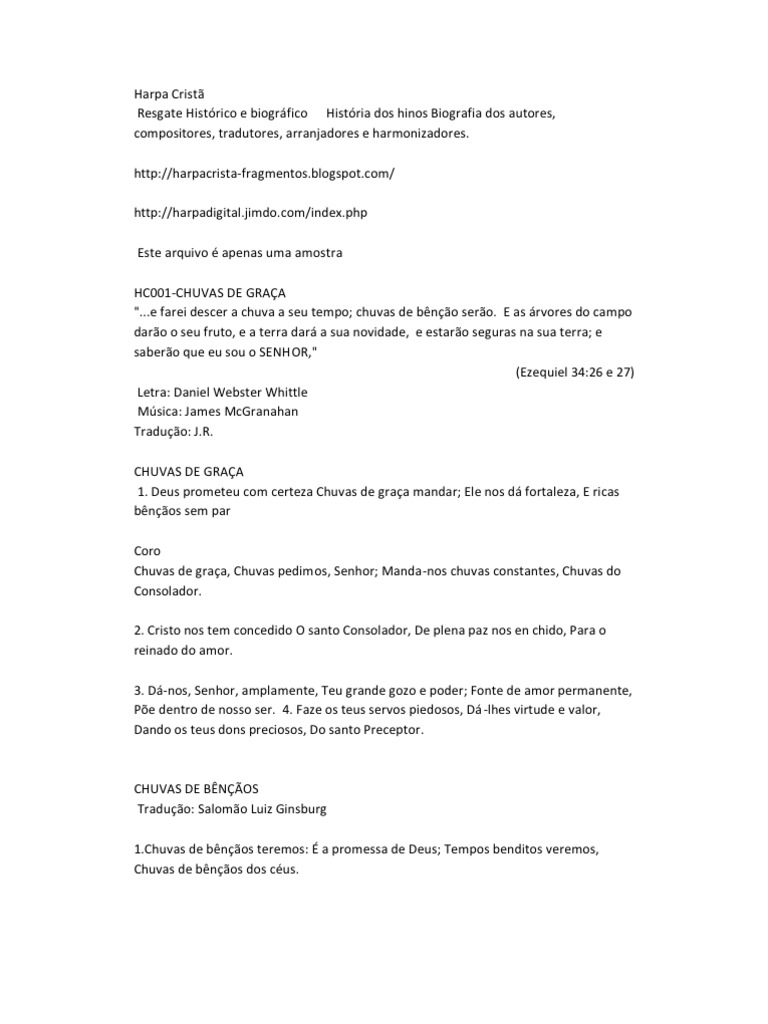 Alegria", "Harpa Cristã" e diversos outros hinários. Este pregador do Evangelho, cantor