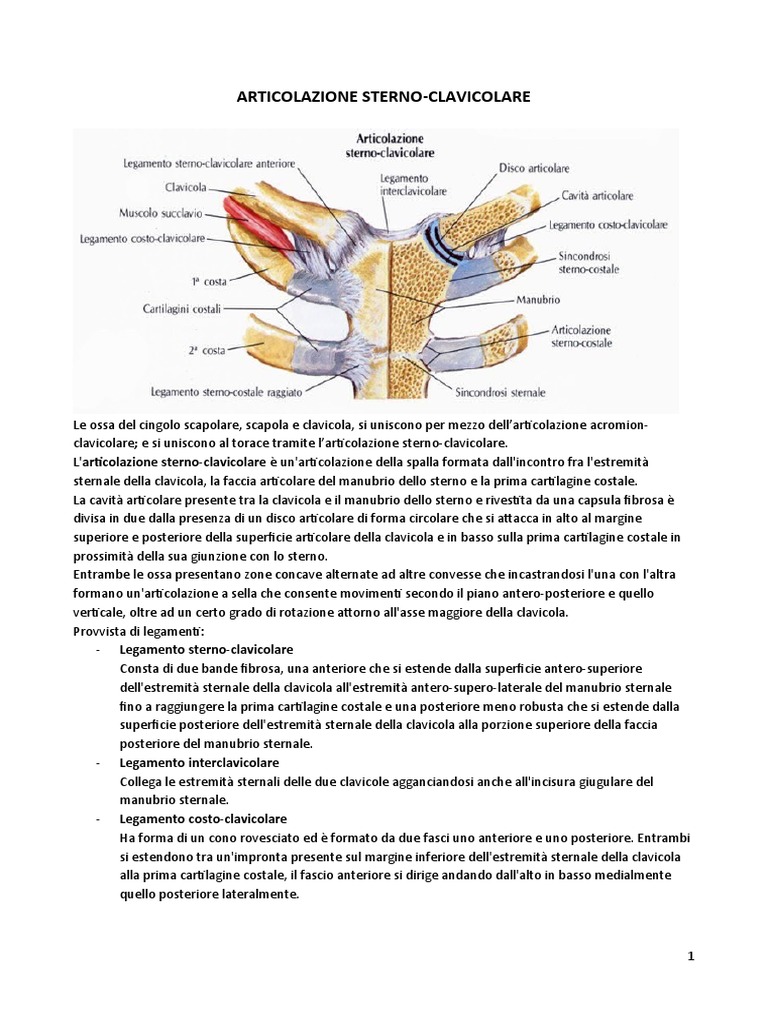 sternale della clavicola, la faccia articolare del manubrio dello sterno e la prima cartilagine costale.