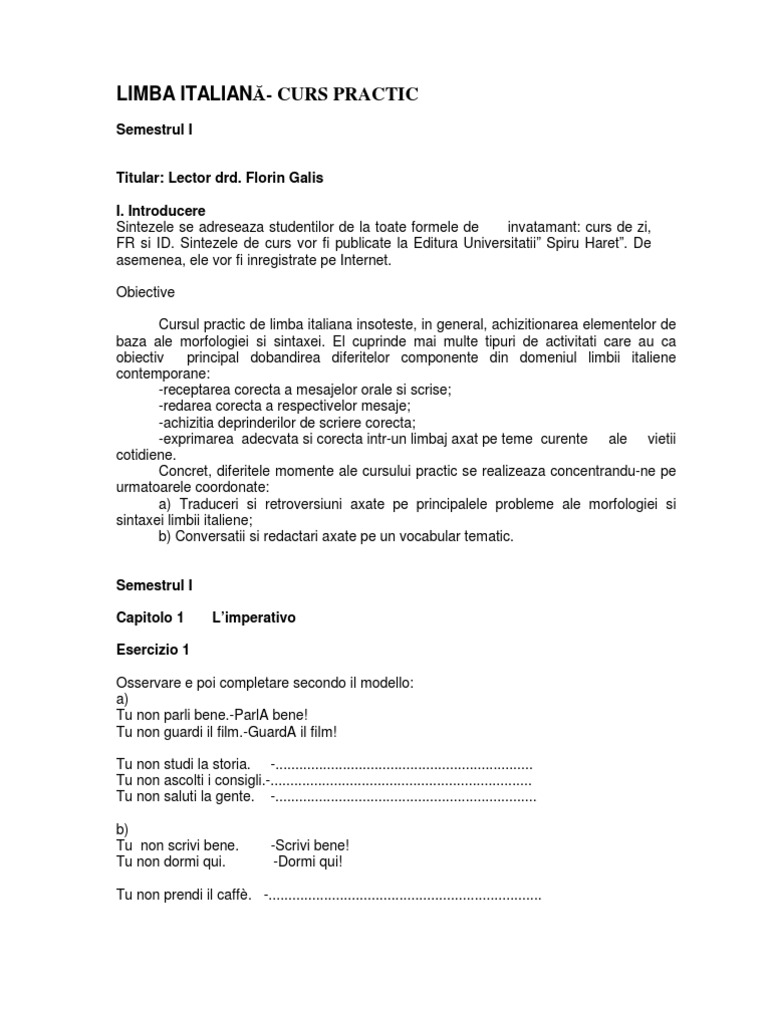 Cursul practic de limba italiana insoteste, in general, achizitionarea elementelor de