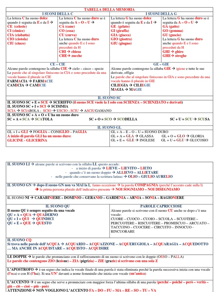 La lettera C ha suono dolce La lettera C ha suono duro se è La lettera G ha suono dolce La lettera G ha suono duro se è