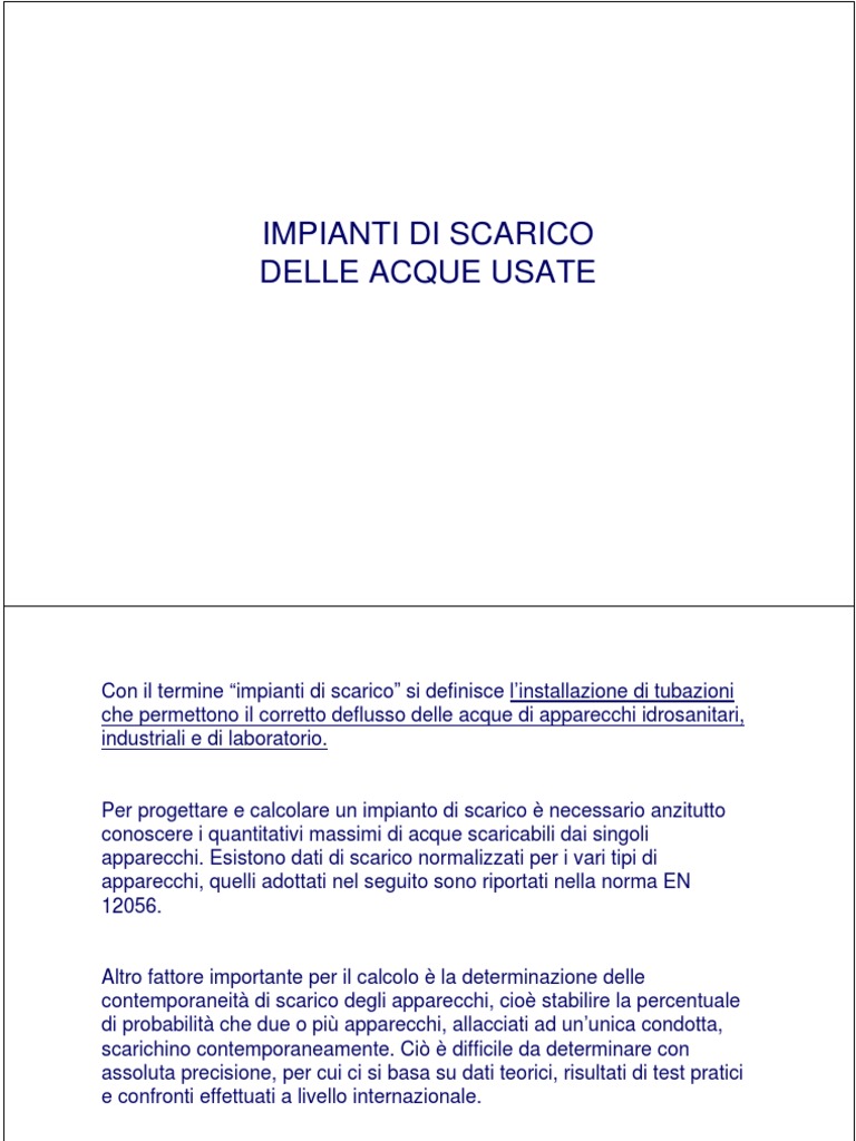 Per progettare e calcolare un impianto di scarico è necessario anzitutto