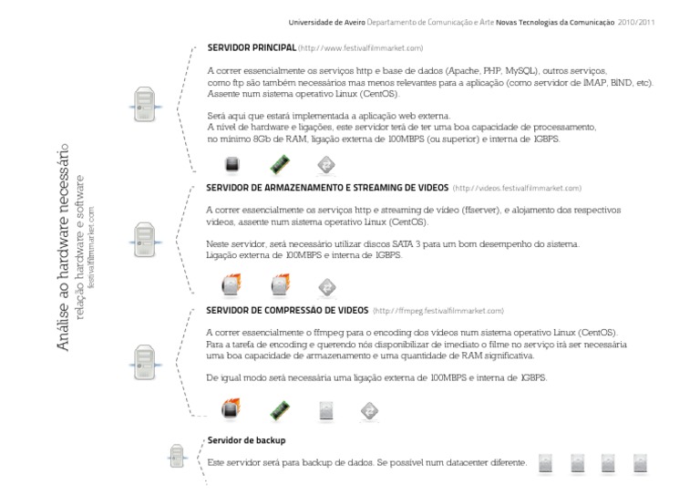 A nível de hardware e ligações, este servidor terá de ter uma boa capacidade de processamento,ı
