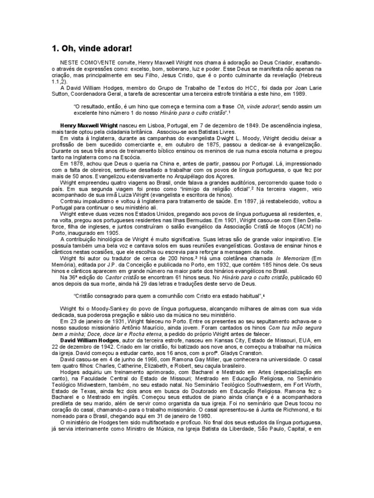 excelente hino número 1 do nosso Hinário para o culto cristão”.1