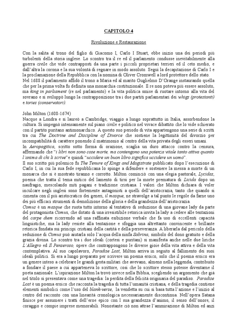 monarca che si è mostrato tiranno e corrotto. Milton cominciò con una elegia pastorale, Lycidas,