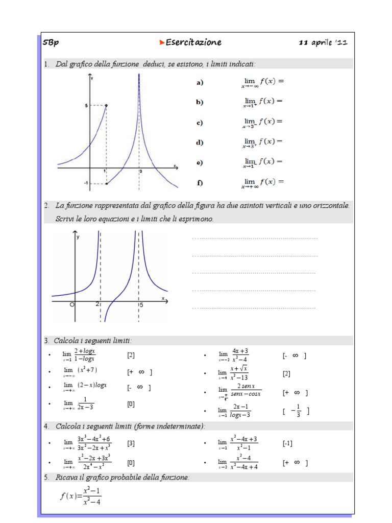 1. Dal grafico della funzione deduci, se esistono, i limiti indicati: