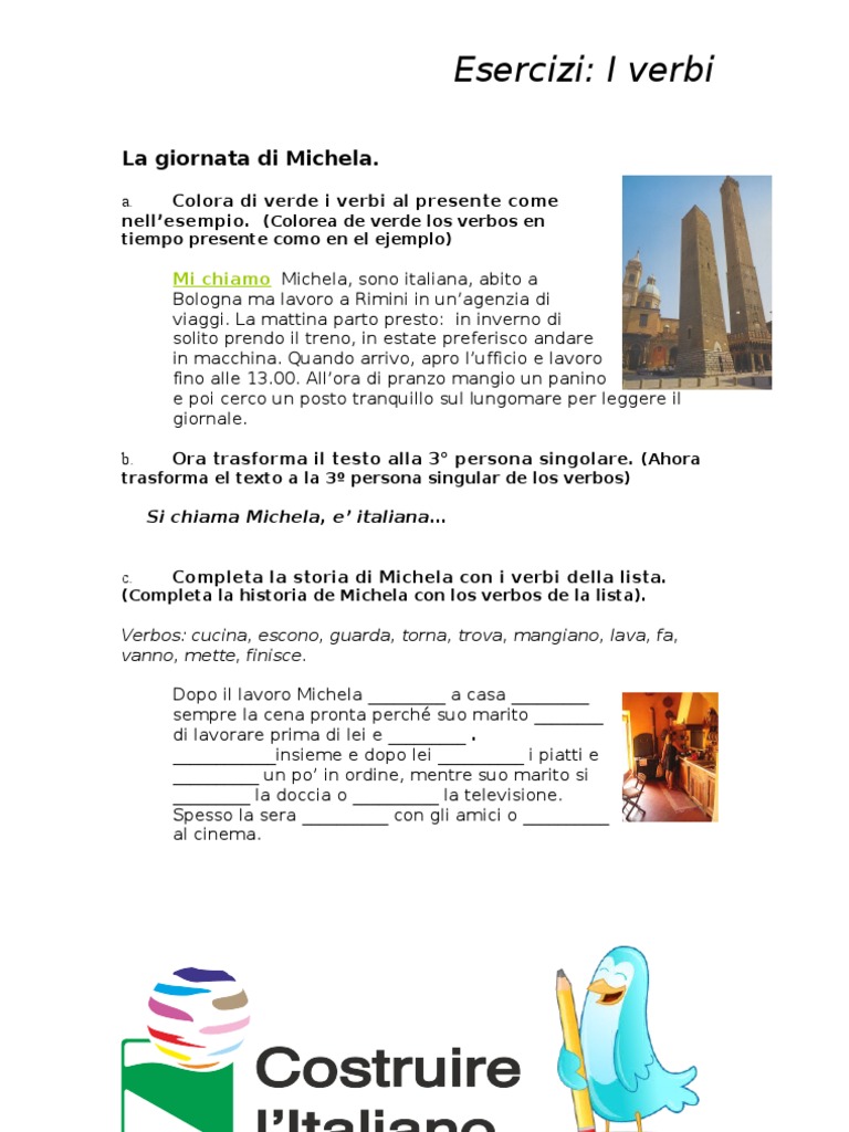 b. Ora trasforma il testo alla 3° persona singolare. (Ahora
