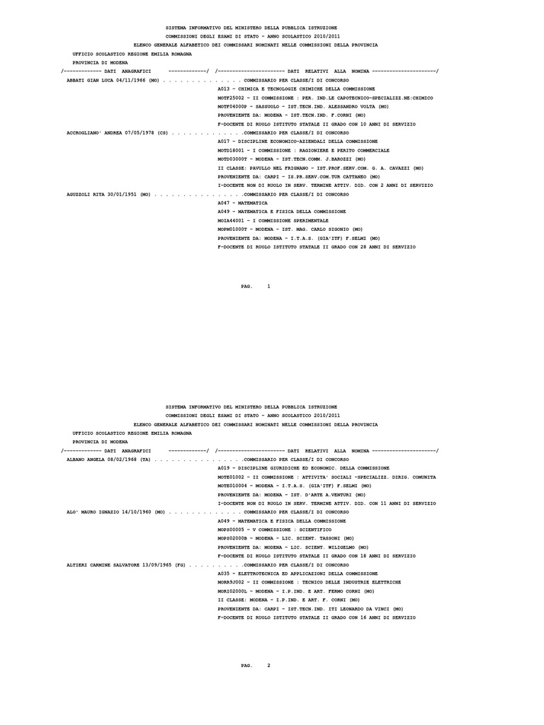 VICENZI GIULIANO 02/09/1960 (MO) . . . . . . . . . . . . . . COMMISSARIO PER CLASSE/I DI CONCORSO