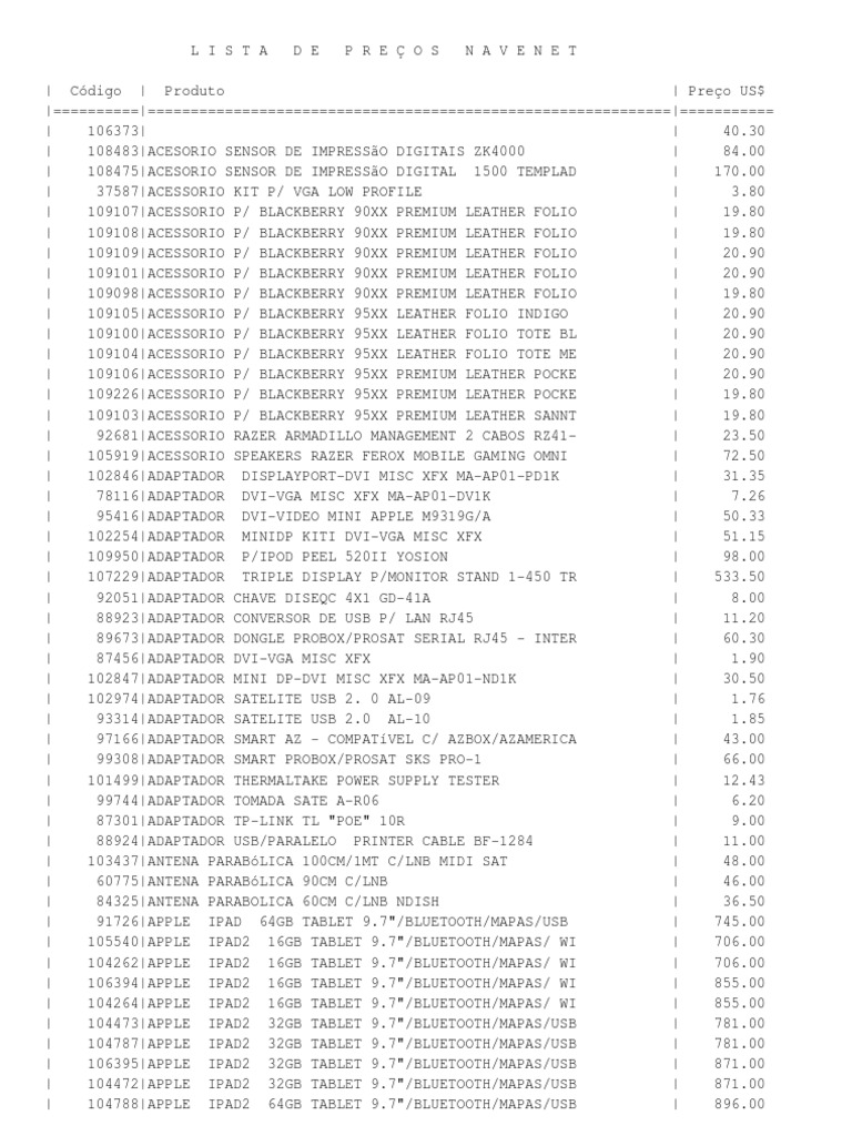 ------------------------------------------------------------------------------------A lista de preos da Nave Net um oferecimento da:
