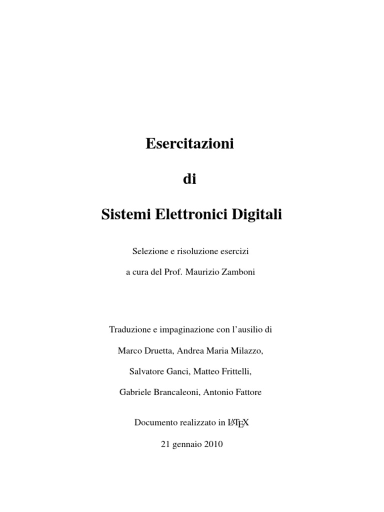 Blocchi Aritmetici 5.1 Decimali Senza segno . . . . . . . . . . . . . . . . . . . . . . 5.2 Complemento a 1 . . . . . . . . . . . . . . . . . . . . . . . . 5.3 Complemento a 2 . . . . . . . . . . . . . . . . . . . . . . . . 5.4 Complemento a 1 e complemento a 2 . . . . . . . . . . . . . . 5.5 XOR . . . . . . . . . . . . . . . . . . . . . . . . . . . . . . . 5.6 Operatore XOR . . . . . . . . . . . . . . . . . . . . . . . . . 5.7 Sottrazioni UNSIGNED . . . . . . . . . . . . . . . . . . . . 5.8 Sottrazioni SIGNED . . . . . . . . . . . . . . . . . . . . . . 5.9 Convertitore in Complemento a 2 . . . . . . . . . . . . . . . . 5.10 Overow . . . . . . . . . . . . . . . . . . . . . . . . . . . . 5.11 Carry-out . . . . . . . . . . . . . . . . . . . . . . . . . . . . 5.12 Addizioni e sottrazioni con segno . . . . . . . . . . . . . . . . 5.13 Somme/Sottrazioni binarie con segno . . . . . . . . . . . . . 5.14 Somma e sottrazione in modulo e segno . . . . . . . . . . . . 5.15 Somma di 3 numeri di 4 bit . . . . . . . . . . . . . . . . . . . 5.16 Incrementatore e Decrementatore per 2 . . . . . . . . . . . . . 5.17 Complemento a 9 di un digit BCD . . . . . . . . . . . . . . . 5.18 Addizione BCD e VHDL . . . . . . . . . . . . . . . . . . . . 5.19 Sottrazione BCD . . . . . . . . . . . . . . . . . . . . . . . . 5.20 Interpretazione graca di un numero BCD a 3 digit con segno 5.21 Half-adder ternario . . . . . . . . . . . . . . . . . . . . . . . 5.22 Full-adder ternario . . . . . . . . . . . . . . . . . . . . . . . 5.23 Sottrattore decimale . . . . . . . . . . . . . . . . . . . . . . . 5.24 Sommatore binario 2-bit . . . . . . . . . . . . . . . . . . . . 5.25 Sommatore 4-bit . . . . . . . . . . . . . . . . . . . . . . . . 5.26 Somme algebriche in Complemento a 2 . . . . . . . . . . . . 5.27 Sommatore con una costante . . . . . . . . . . . . . . . . . . 5.28 Conta numero di 1 presenti in ingresso . . . . . . . . . . . . . 5.29 Comparatore > = < . . . . . . . . . . . . . . . . . . . . . . 5.30 Comparatore di uguaglianza di due numeri senza segno su 4 bit 5.31 Comparatore su 4-bit . . . . . . . . . . . . . . . . . . . . . . 5.32 Comparatore su 4-bit modulare . . . . . . . . . . . . . . . . . 5.33 Comparatore su 4-bit realizzato con un sottrattore a 4 bit . . . 5.34 Comparatore di uguaglianza e maggioranza su 4-bit modulare 5.35 Sommatore Ripple-Carry . . . . . . . . . . . . . . . . . . . . 5.36 Carry-Lookahead Gerarchico . . . . . . . . . . . . . . . . . . 5.37 Codice VHDL ignoto . . . . . . . . . . . . . . . . . . . . . . 2