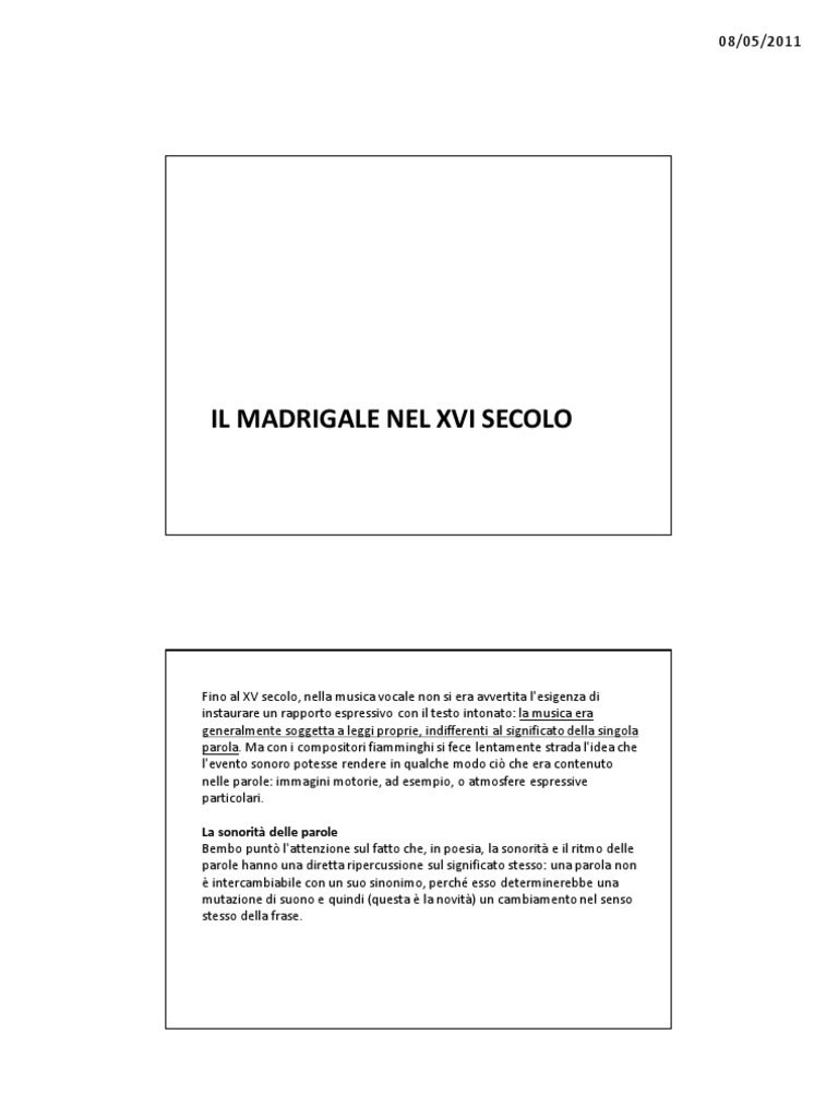 IL RAPPORTO COL TESTO I MADRIGALISMI