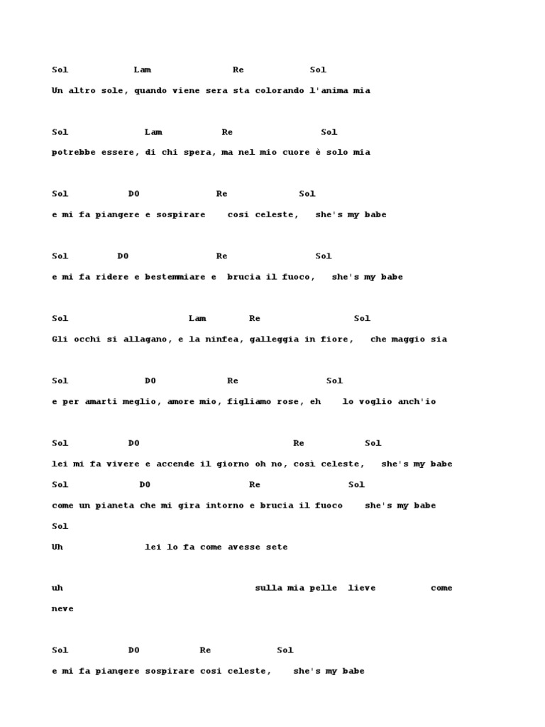 lei mi fa vivere e accende il giorno oh no, cos celeste, Sol DO Re Sol